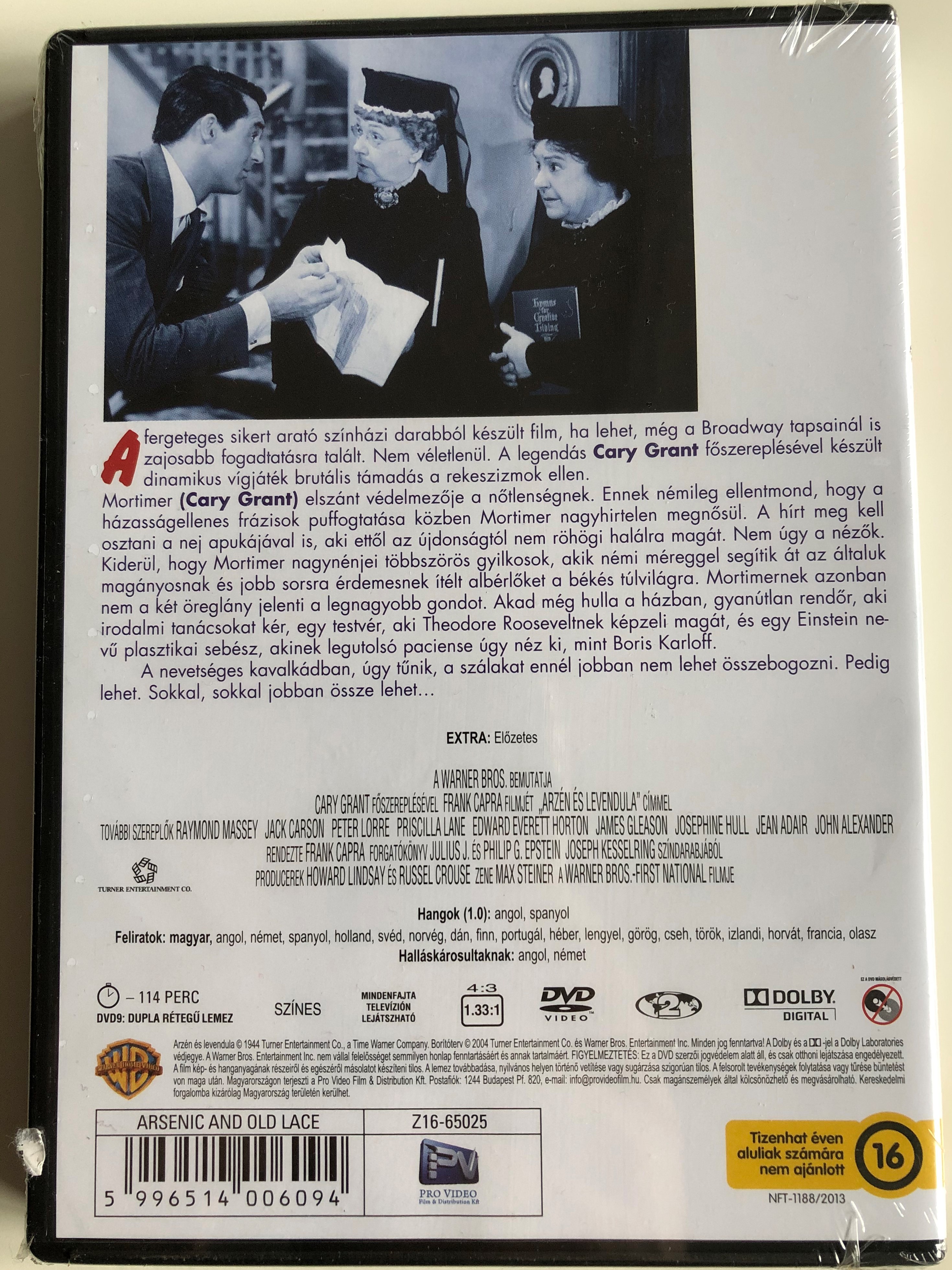 Arsenic and Old Lace DVD 1944 Arzén és Levendula / Directed by frank Capra / Starring: Cary Grant, Josephine Hull, Jean Adair