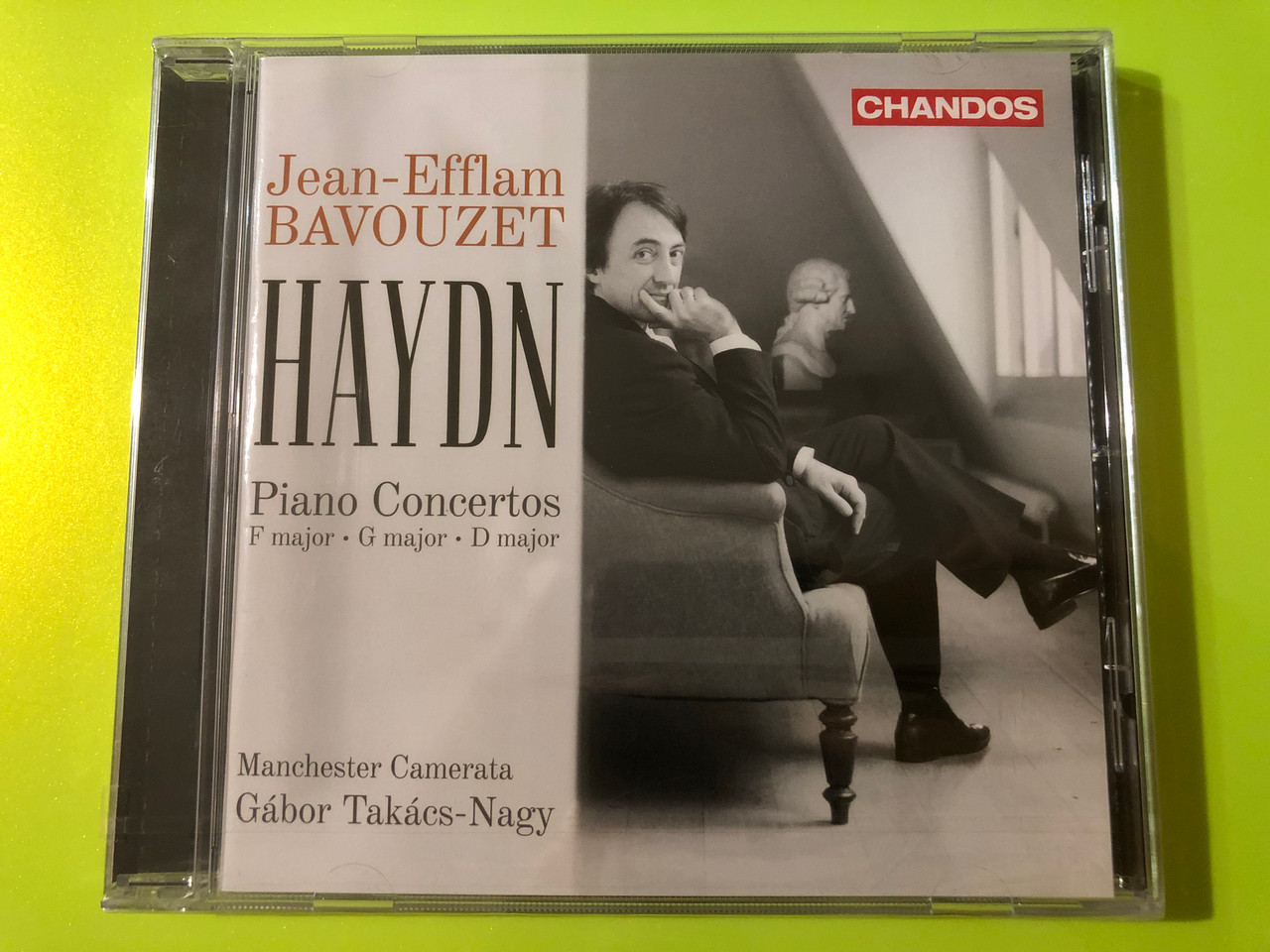 Ez a 2014-es Chandos Records kiadvány a többszörös díjnyertes francia zongoraművész, Jean-Efflam Bavouzet előadásában mutatja be Joseph Haydn három vibráló zongoraversenyét. A magyar karmester, Takács-Nagy Gábor lendületes vezényletével a Manchester Camerata olyan tiszta és energikus kíséretet nyújt, amely tökéletesen kiegészíti Haydn szellemességét és eleganciáját. A műsor tartalmazza az F-dúr, G-dúr és a híres D-dúr zongoraversenyt. A tisztaságáról és ritmikai precizitásáról ismert Bavouzet friss szemléletet hoz ezekbe a művekbe, sőt, saját eredeti kadenciákat is komponált ehhez a felvételhez. Elengedhetetlen darab a prémium minőségű klasszikus zongorafelvételek kedvelői számára.