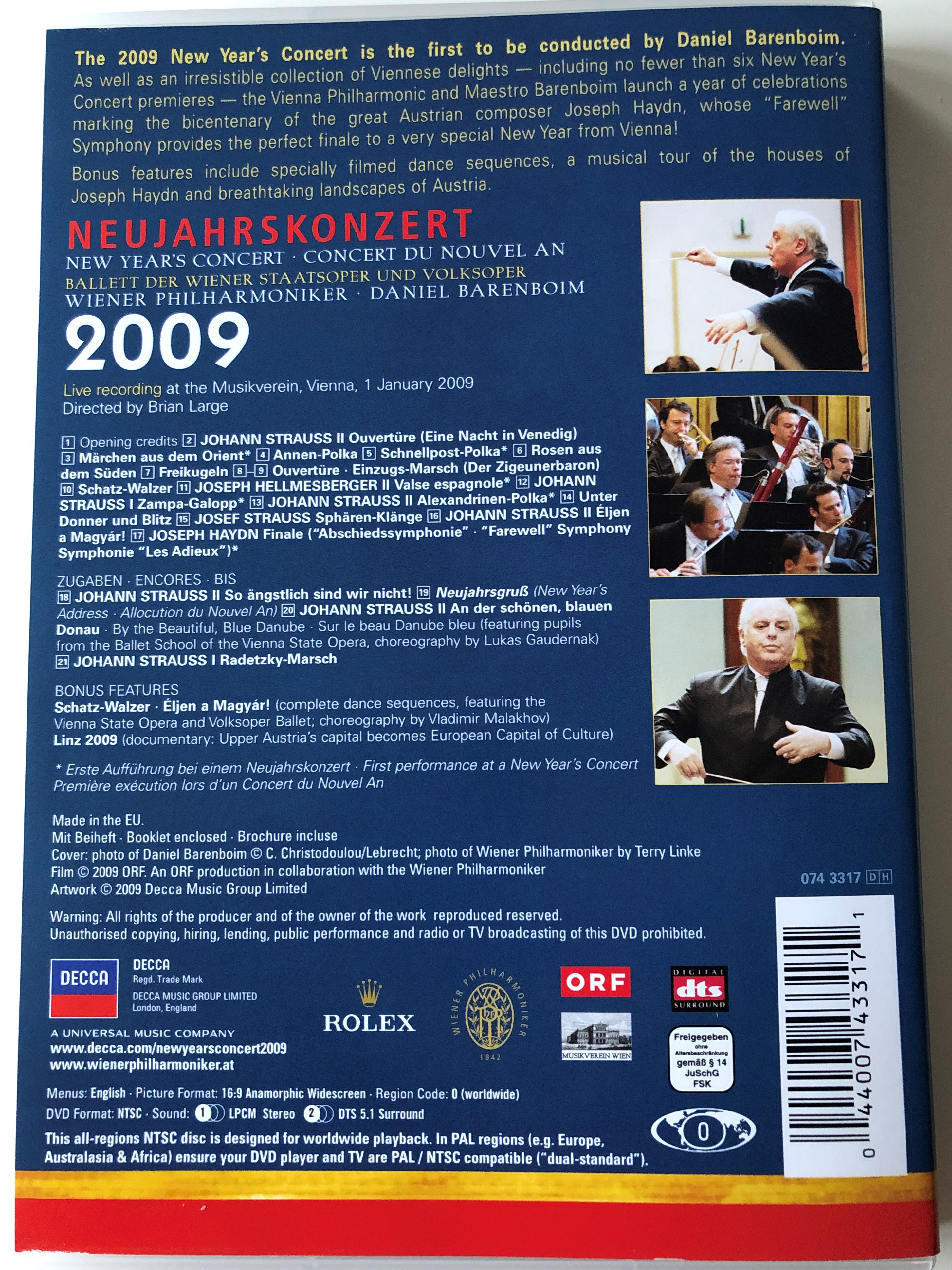 Neujahrskonzert DVD 2009 New Year's Concert / Conducted by Daniel Barenboim / Director's Cut by Brian Large / Wiener Philharmoniker / Decca