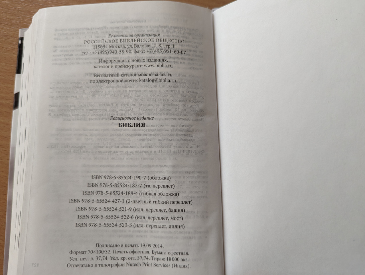 Published by the Russian Bible Society in 2014. Printed by the Russian Bible Society.