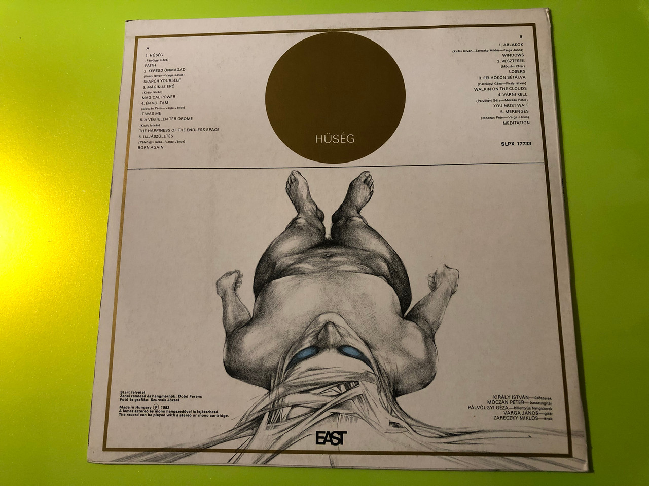 English "Hűség" (Faithfulness) is the second studio album by the legendary Hungarian progressive rock band EAST, released in 1982. Widely considered one of the finest examples of Eastern European symphonic progressive rock, the album blends complex instrumentation, ethereal synthesizers, and powerful vocals. Following their successful debut, "Játékok," this record solidified EAST's reputation for world-class musicianship. This specific copy is a rare treasure, bearing the original hand-signed autographs of the musicians who created this sonic journey.